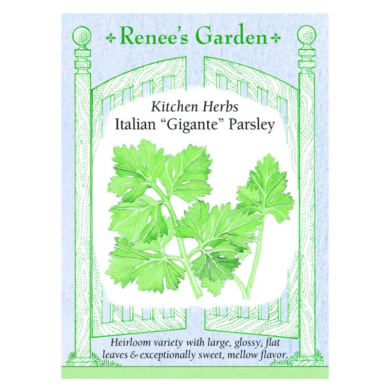 | Deliciously different, our heirloom Gigantic Italian parsley has exceptionally large, flat glossy leaves whose sweet and mellow flavor will win your taste buds’ applause. We import this variety for its fine full flavor, without any hint of harsh metallic overtones. The deep green, flavorful leaves are wonderful; add a healthy handful of the chopped leaves to every green salad you make to heighten both flavor and nutrition. Sprinkle liberally on potatoes, rice, seafood and pasta and to finish soups and stews. Grow some in a big pot near your kitchen where you can cut it often to enjoy in everyday cooking. |