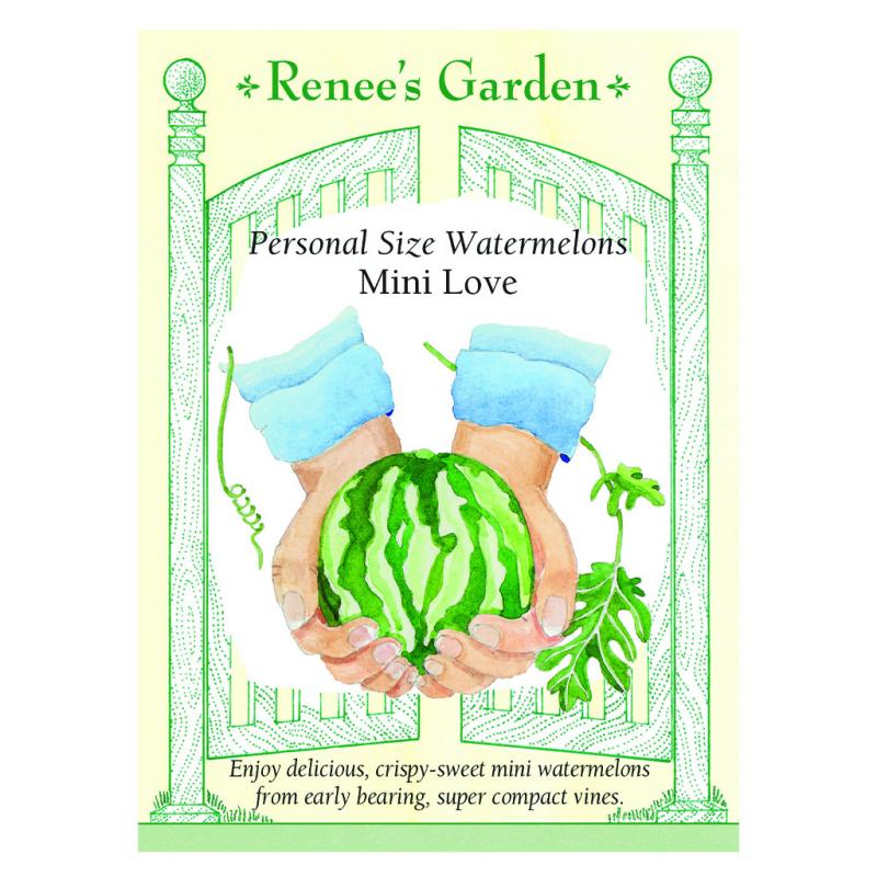| All-America winner! Super productive and easy to grow, Mini Love watermelons are perfect for large containers and small gardens. These early-bearing, compact vines yield pretty green-striped fruits that are just the right size for individual servings, so watermelon lovers can enjoy having a whole fruit all to themselves. Mini Love’s ruby-red flesh is tender-crisp, sweet, and succulent with few seeds. These crack-resistant little beauties are 4-6 inches in diameter and weigh 3-6 pounds. A wonderful summer garden treat! |