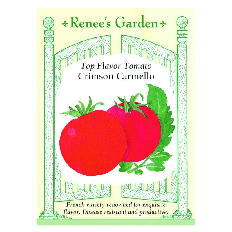 Description: Bred in France especially for fresh eating, plump Crimson Carmellos will satisfy all your tomato fantasies. The round red juicy fruits have the perfect sweet to acid balance that translates to exquisite taste. Big 4 to 5 inch Carmellos are borne in abundance on vigorous disease resistant and widely adapted indeterminate vines. Savor their sun warmed sweet flesh sliced fresh from the garden, in salads, pastas or wherever you crave rich tomato flavor.