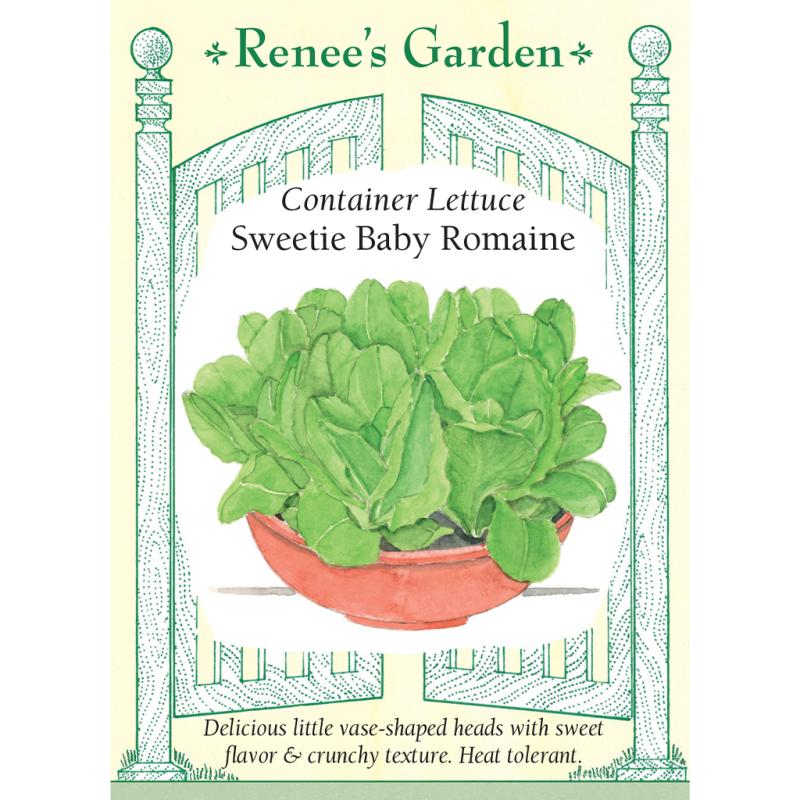 | Sweetie Baby is a brand-new baby romaine bred to be compact, juicy, and delicious. The pretty green leaves grow in perfect 6- to 8-inch-tall vase-shaped heads that are heavy for their size, with a wonderful, sweet flavor and crisp, crunchy texture. In the garden, Sweetie Baby lettuce is long-lasting, slow to bolt, and heat-tolerant. This handsome and appetizing little romaine is ideal for growing in containers or small space gardens. Perfect for individual salads or for sandwiches. |