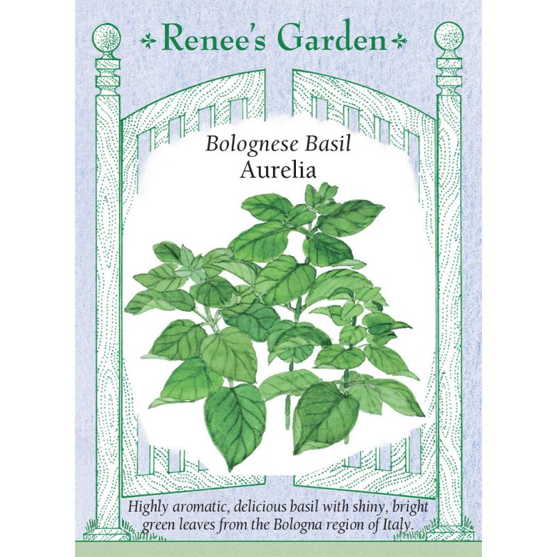 | (Ocimum basilicum) This is the strain of basil our favorite Italian seed grower produces for his local home market in the Bologna region. Aurelia offers classic sweet basil flavor with especially rich spicy undertones. Plants grow vigorously and branch early into heavy sprays of big shiny green leaves with a complex aromatic fragrance. Aurelia pairs beautifully with summer veggies, pasta, rice, chicken and pork dishes. Totally terrific with tomatoes and heavenly for pesto. |