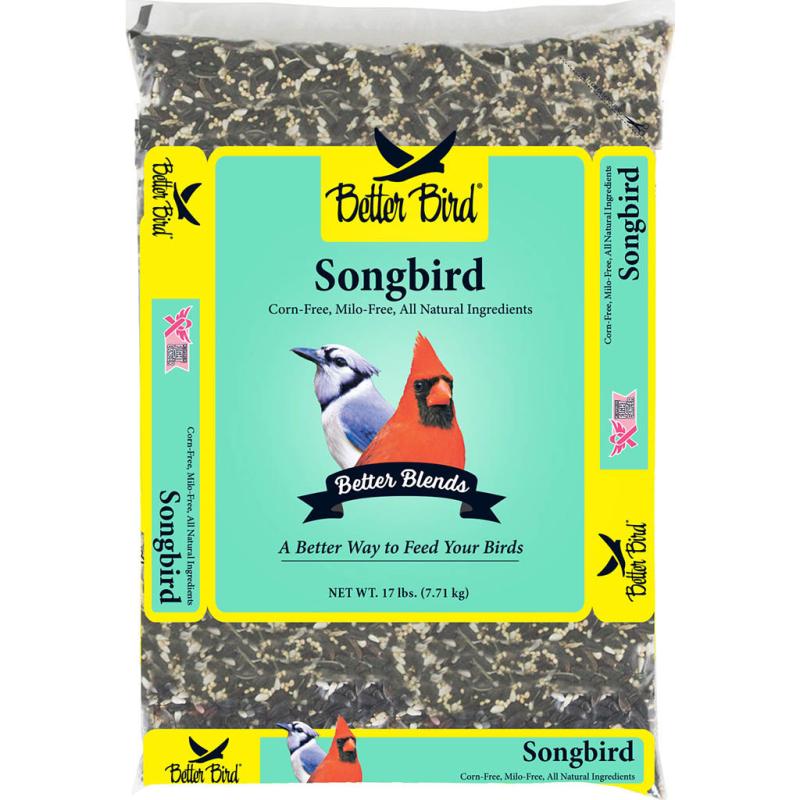 | No Corn, No Milo Better Bird Better Blends contain only the ingredients that desired backyard birds love. This helps to ensure they eat more seed at your feeder instead of tossing it on the ground. You save money by not paying for wasted product. These are locked formulas you and your birds are guaranteed the same quality satisfaction with each bag. Better Blend is also free of added chemical preservatives. Primary species include songbirds, woodpeckers, cardinals, finches, titmice, jays, grosbeaks, buntings, nuthatches, chickadees and other outdoor birds.Ingredients: Sunflower Seed, Millet, Safflower Seed, Peanuts. |