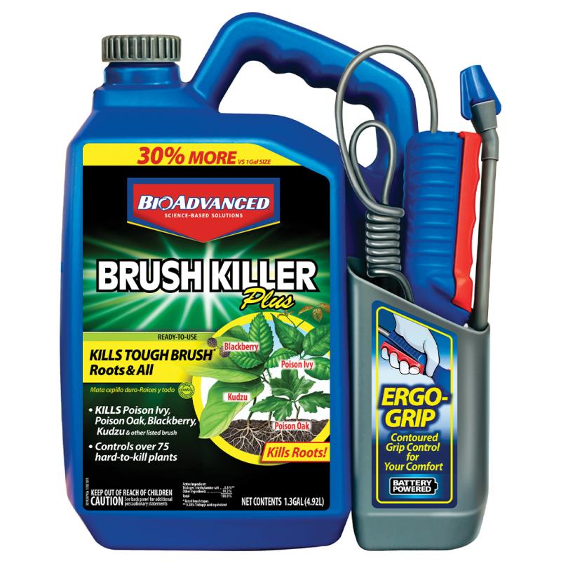 | It has a penetrating formula that kills tough brush - roots and all. It kills kudzu, poison ivy, poison oak, and wild bramble berries, plus it kills 71 other types of weeds and brush—penetrating formula for a quick kill. Now, it kills more weeds. Convenient, no-mix formula with nested sprayer for effortless spraying and neat storage. Active ingredient: 0.8% triclopyr, triethylamine salt. |