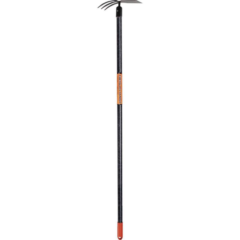 | Cultivator hoe with a sturdy, fiberglass handle and tempered, heat-treated, steel blade for greater strength and longer life. Sharpened blade edges penetrate tough ground with reduced effort. Easy penetration of a variety of materials. Ten-year warranty. |