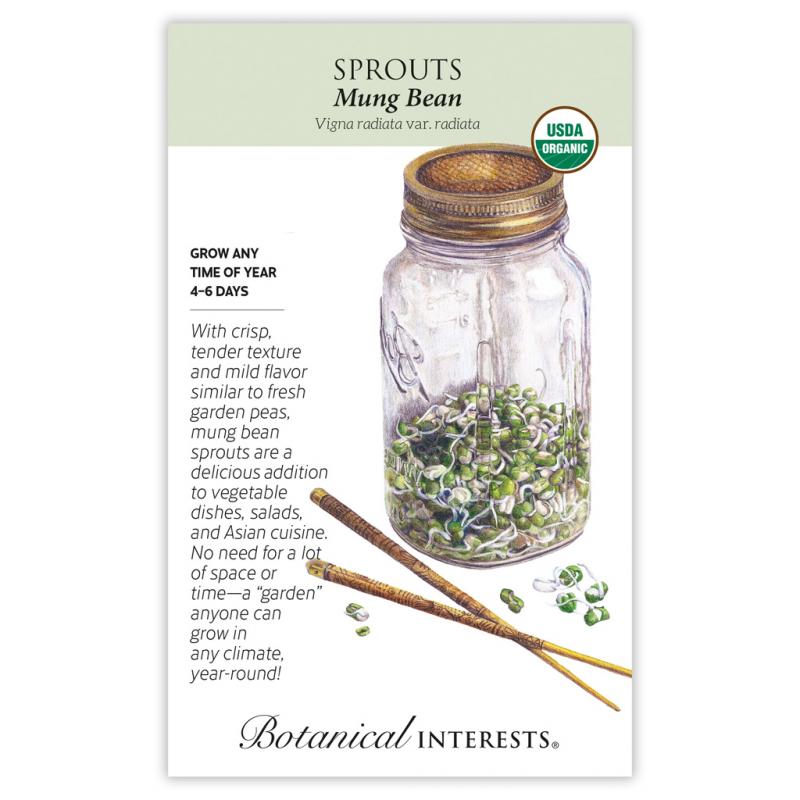 | Grown and eaten by the Chinese for over 3,000 years, mung bean sprouts are high in protein, iron, magnesium, many vitamins, and are a good source of dietary fiber. An essential ingredient in eggrolls and many Asian stir-fry dishes, but can also be enjoyed raw in salads or on sandwiches—the culinary possibilities are limited only by your imagination! |