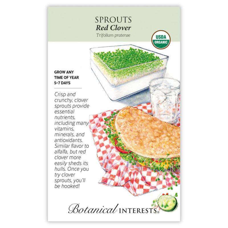 | If you like alfalfa sprouts, you will love the crisper crunch and easy-to-hull sprouts of red clover. Enjoy its bite-free, mild flavor on just about anything from sandwiches and salads to green drinks with its vitamins, minerals, protein content, and beneficial isoflavones. |