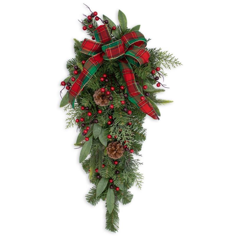 Teardrop Mixed Pine Swag w/Red/Green