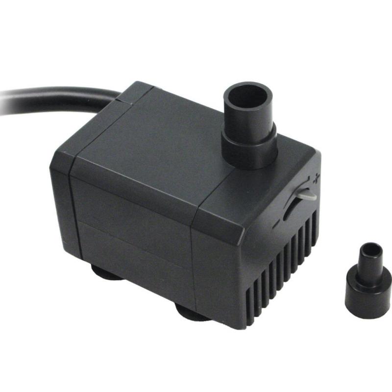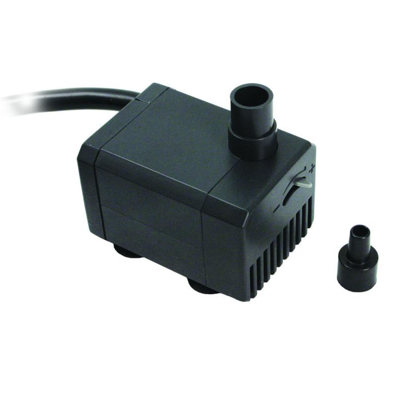 | Submersible, energy-efficient mag drive water pump with an oil free design, ideal for running smaller decorative fountains. The durable pre-filter cage prevents clogging. Includes a control valve for a customized water flow. Includes 6ft power cord. |