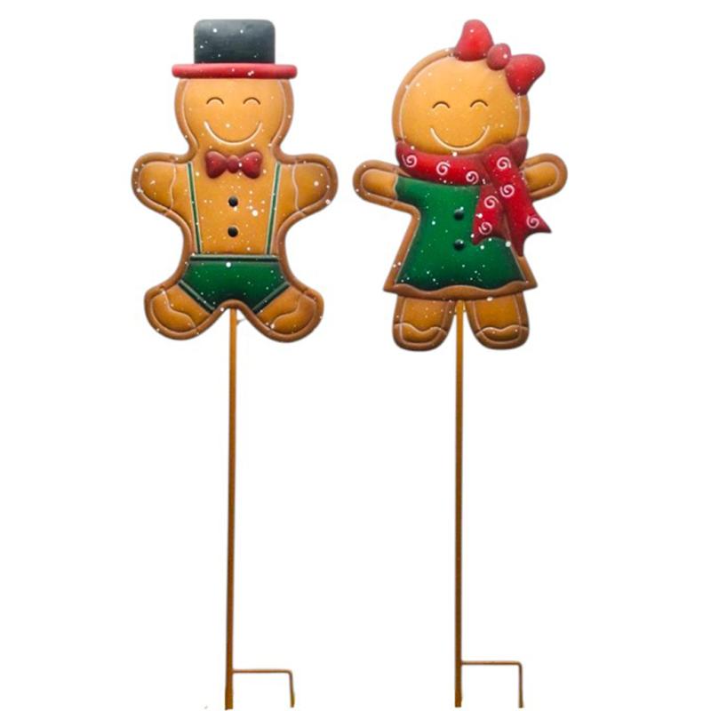 Metal Snowman Stakes with Red / Green Scarf 36"