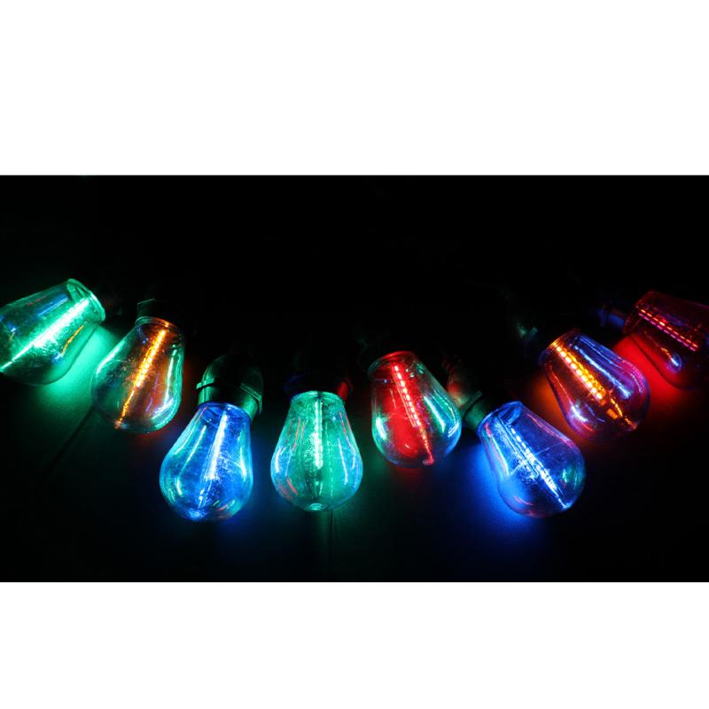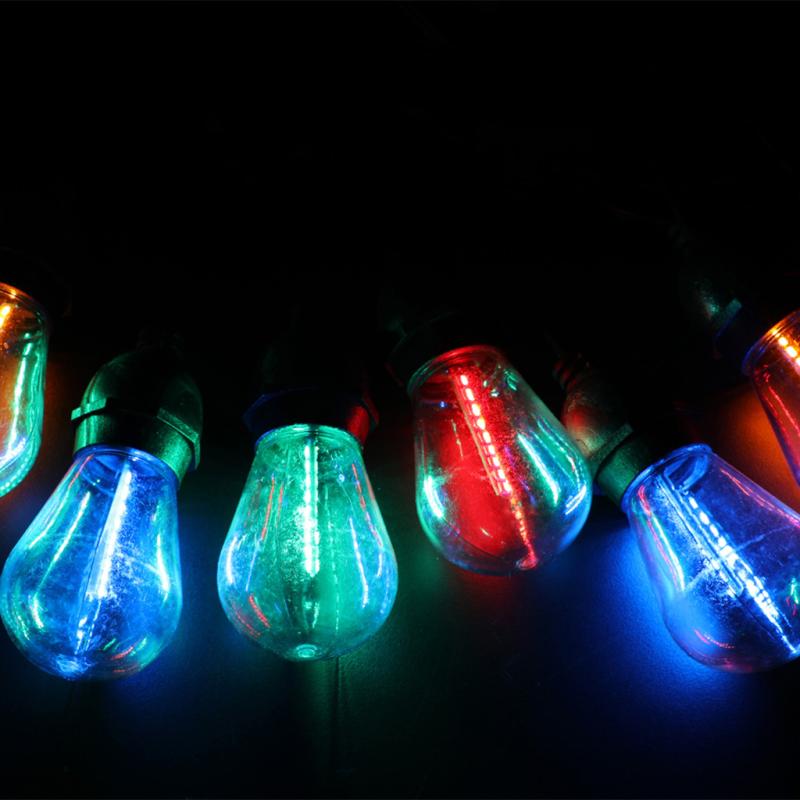 | The Color Changing Light Set is a ten-count light set with four functions and color-changing features, with a black wire cable. It is a two-in-one color-changing light string with S14 light caps 15 feet long and 1.5-foot spacing between each bulb. Ten lights per set, dual-color lights with warm white/multi-color LED, and four functions: color change, steady, flash, and fading. |