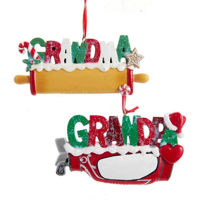 | Celebrate the joy of family with this charming “Grandma / Grandpa” ornament by Kurt Adler. Crafted in resin with meticulous detail, it features one of two versions (Grandma or Grandpa) and hangs from a festive red loop. A perfect sentimental addition to your holiday décor, this ornament honors cherished loved ones, adding warmth and character to any Christmas tree. |
