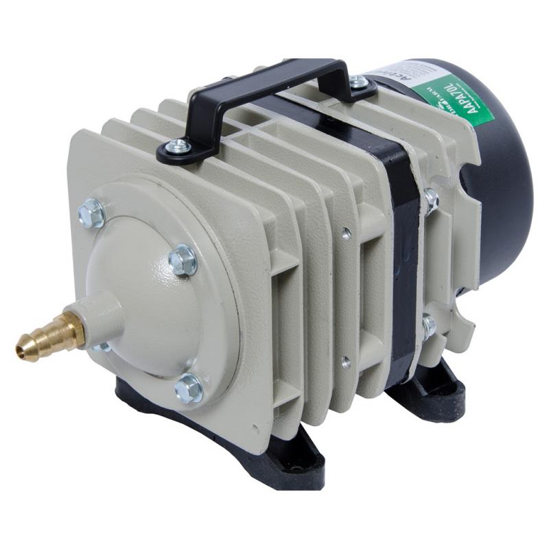 | Perfect to run several Waterfarms or multiple air stones at once. Electrical magnetic air compressor in a high quality aluminum alloy case. Wear and tear resistant material for cylinder and piston. High pressure and high output. Comes with multi-outlet divider.(6, 8, and 12) that can be individually opened or shut. 60w. 70 lpm. Pressure >0.03 Mpa |