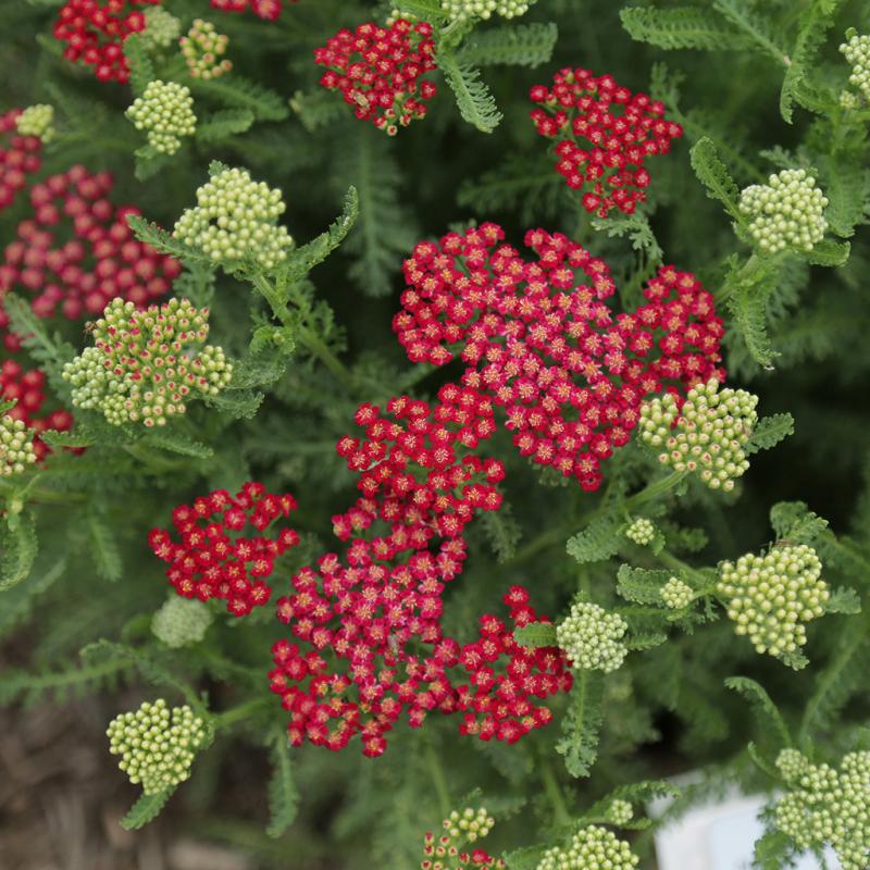 | New Vintage™ Red Yarrow adds bright jewel-tone reds to the garden palette from late spring through summer. This ruby red yarrow is a compact, tidy, drought tolerant addition to hot summer days. The flowers age nicely and don’t fade to brown like other cultivars. Yarrow is a pollinator-friendly, easy-to-grow perennial that lights up the garden. Butterflies love yarrow, while deer and rabbits tend to avoid this plant. The lovely, flat-topped flowers make perfect additions to summer bouquets. Deadhead faded blooms to encourage repeat blooming. |