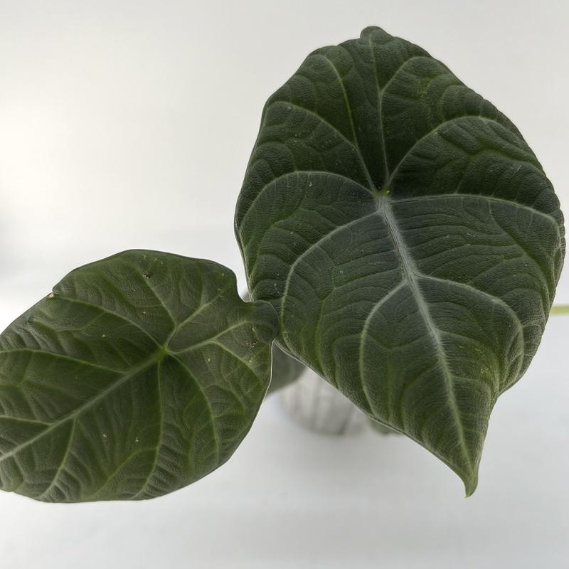 Dark green, velvety foliage with prominent bright white veins is a Frydek calling card. You'll find yourself wanting to reach out and touch the soft leaves. The contrasting veins highlight the deep green background. |