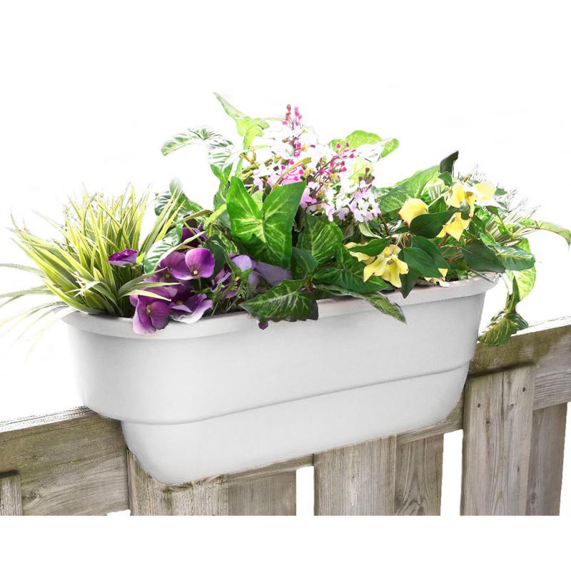 | Deck planters beautify deck and fence rails with ease and convenience. Made of highly durable polypropylene, this rectangular adjustable deck rail planter is self-mounting. No screws or brackets necessary. Rectangular shape suitable for 4" and 6" wide rails |