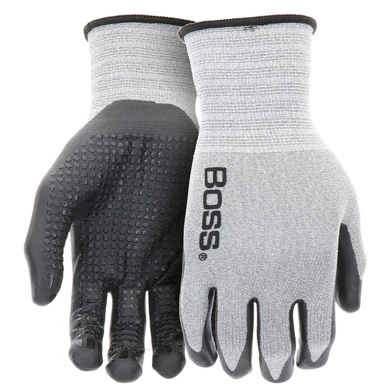 | The Boss® Tactile Grip glove is a premium accessory that enhances grip and provides comfort during various tasks. The nitrile used is a synthetic polymer that is resistant to abrasion, snags, and punctures, offering durability. This glove features a unique dotted palm that provides exceptional traction and control, enabling you to handle objects of various shapes and sizes confidently. The flat coating on this glove offers a firm grip on tools and objects, enhancing productivity and minimizing the risk of slips, drops, and injuries. The elastic knit wrist allows for easy wear and removal while keeping dirt and debris out of your glove. The nylon shell incorporated into the design ensures added dexterity and comfort throughout those long working days. Whether you are engaged in construction, gardening, or any other manual activity, our Tactile Grip glove will undoubtedly elevate your productivity and efficiency. |