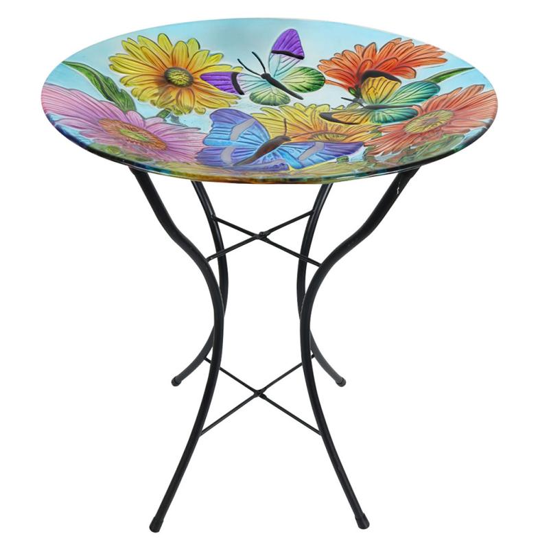 Briarwood Lane Dragonflies and Water Lilies Glass Bird Bath With Stand