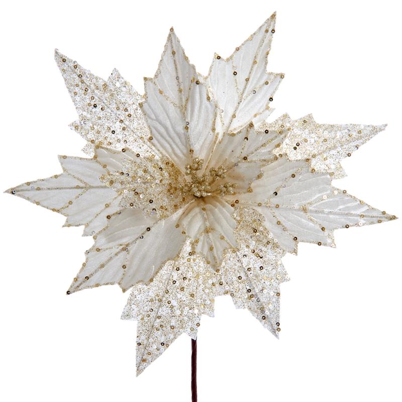 Silk Flowers Velvet Pointsettia with Gold Sequine