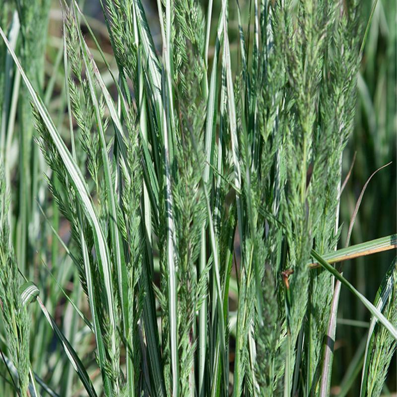 | A variegated feather reed grass discovered as a sport of C. 'Karl Foerster'. It has that classic upright growth habit of Calamagrostis, with beautiful variegated foliage, a wide white center to the leaf. It holds its variegation well through the heat of the summer. The inflorescence is similar to 'Karl Foerster'. Reaches a mature height of 3-4', inflorescence to 5'. Once roots are established, it is quite drought tolerant. Clump forming. |