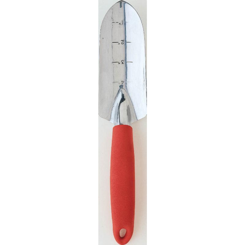 Description: Narrow profile transplanter that is ideal for flower pots. 2.125" wide blade. Marked and graduated for depth. Lightweight one piece polished aluminum alloy, which will not bend or rust. Contoured cushioned grips add to ease of use and comfort. Limited lifetime warranty.