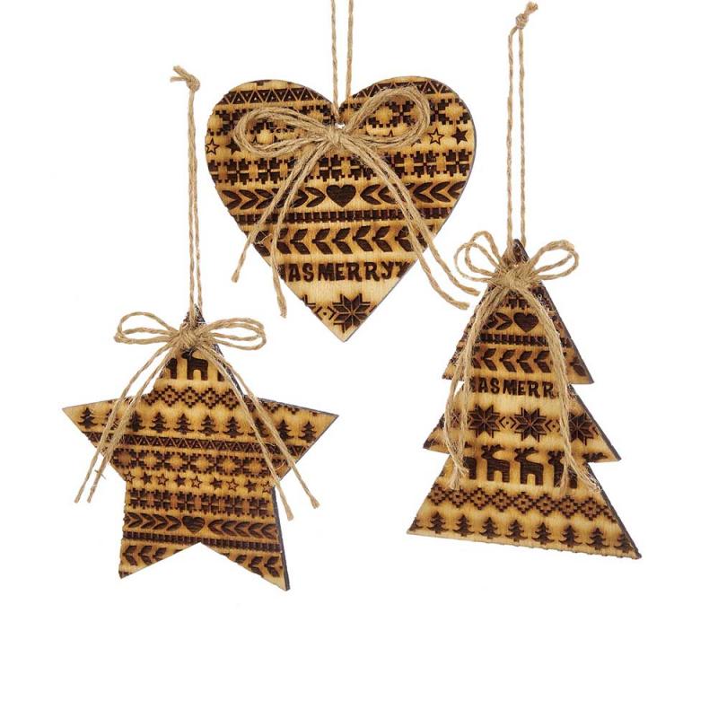 Kurt Adler Ornaments Wood Disc Snowflake Ornament