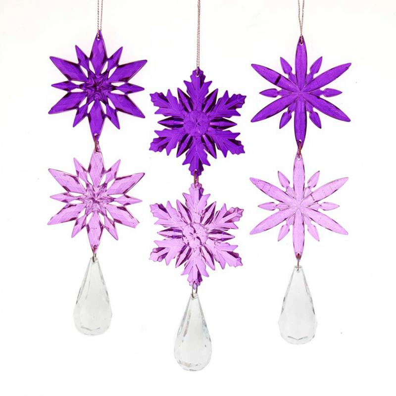 Pink Theme Ornaments Purple / Dark Pink Snowflake Dangle Assorted
