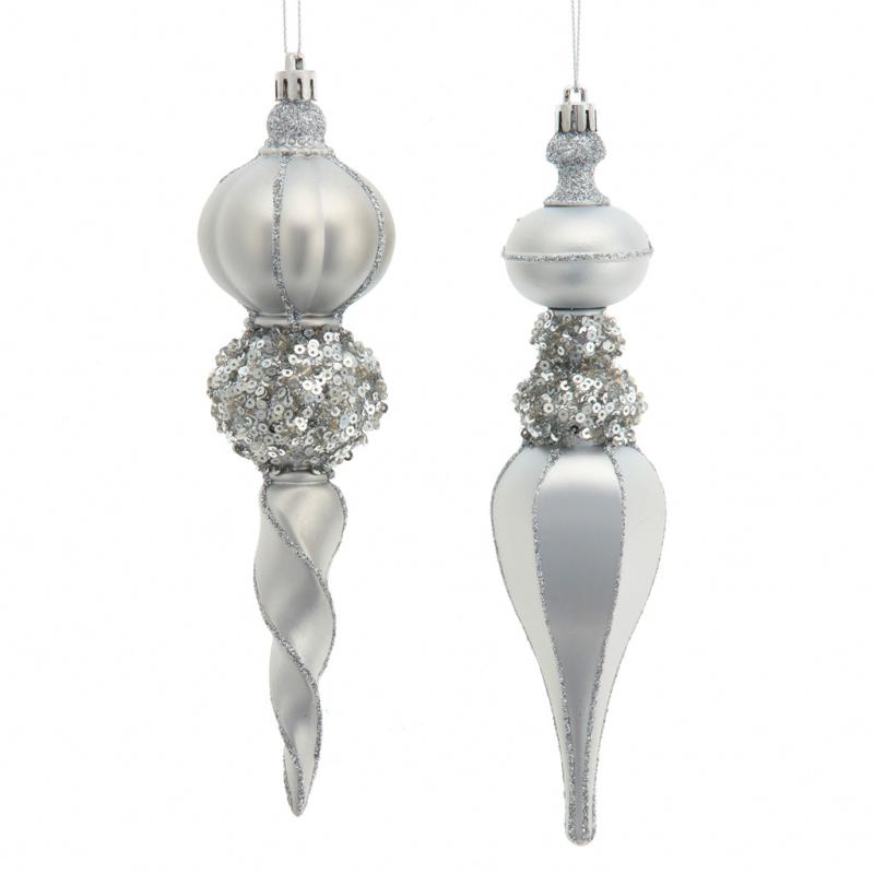 | Kurt Adler's Plastic Silver Finial Ornaments are exquisite and sophisticated holiday decorations that bring elegance and charm to your festive setting. Crafted from durable and lightweight plastic, these ornaments combine the timeless allure of traditional finial shapes with the modern advantages of durability and safety. Each finial ornament is designed with a slender, elongated silhouette, typically measuring 8.75 inches in length, and it tapers to a gracefully pointed end. This distinctive shape provides class and sophistication, making these ornaments a stylish addition to your holiday decor. These versatile ornaments can be hung from your Christmas tree's branches or used in various holiday displays throughout your home. Made from plastic, they are resilient and robust, which means they can withstand minor falls and rough handling, making them a practical choice, especially in households with active children or pets. The sleek and timeless design of these ornaments makes them suitable for a wide range of holiday themes and color schemes, whether for a classic and traditional look or a modern and contemporary one. These ornaments will catch the eye and add a touch of sophistication to your festive decor. Their slender and elegant shape, combined with the dazzling silver finish, makes them a delightful addition to your Christmas tree or any other holiday display, and they offer both beauty and practicality, ensuring that your holiday season is filled with grace and a touch of contemporary style. |