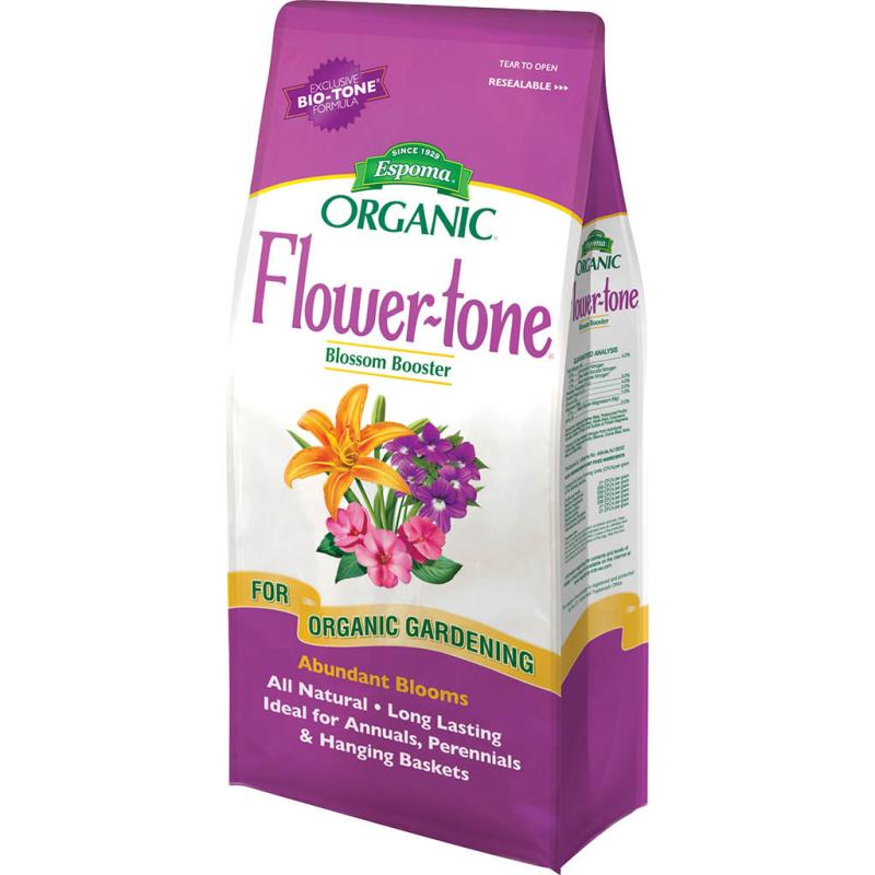 | Flower-tone All-Natural Plant Food 3-4-5 is enhanced with Bio-tone beneficial microbes, which have been proven to help plants establish faster, develop deeper roots, and produce superior blooms. Formulated to feed annuals and perennials. Low in nitrogen and rich in potash. Promotes and prolongs abundant blooms. |