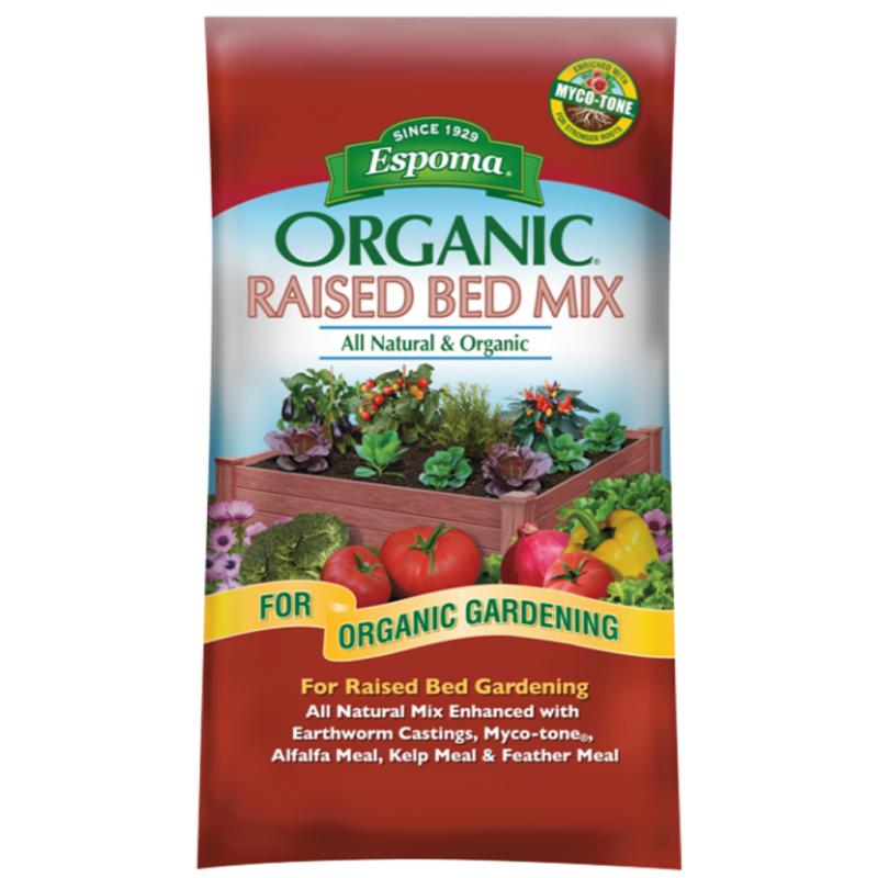 | Organic Raised Bed Mix is fortified with worm castings, alfalfa, kelp and feather meal. Help builds strong roots. Use for in-ground plantings. Enhanced with Myco-tone. Used for raised bed planting. This product is formulated from 55% to 65% Aged Forest Products, Canadian Sphagnum Peat Moss, Perlite, Limestone to adjust pH, alfalfa meal, kelp meal, feather meal, earthworm castings and yucca extract. |