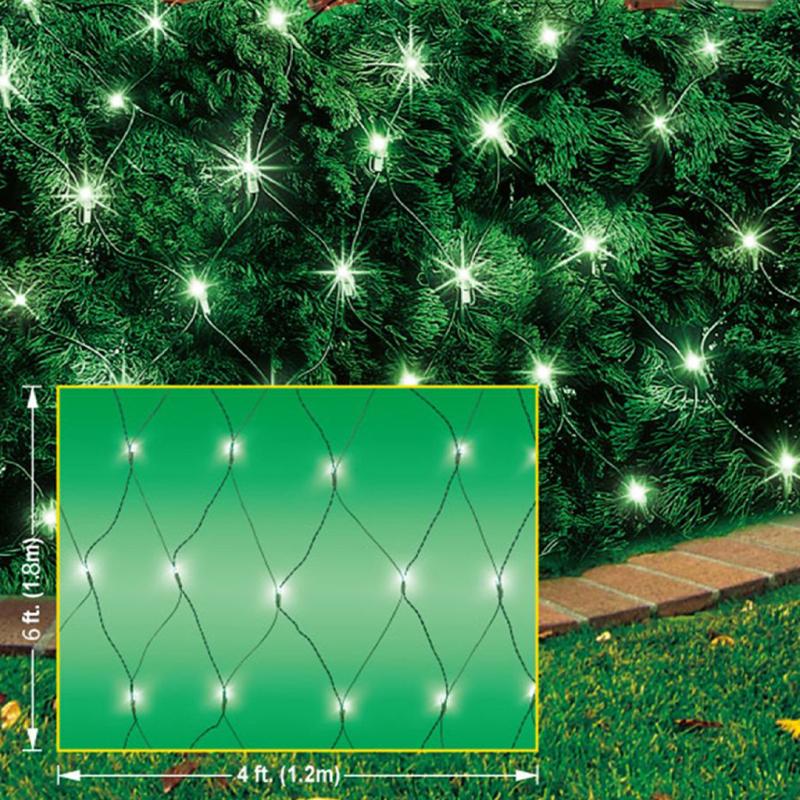 | Decorate trees, hedges, bushes, and more in just minutes! The 4-foot by 6-foot solar net nights has 100 LED warm white bulbs that offer twice the density in the same amount of space. They are simple, easy to use, and can be connected end to end. This outdoor set uses a 600Mah Ni-Mh rechargeable battery. The set automatically glows at dusk with a built-in sensor device. |