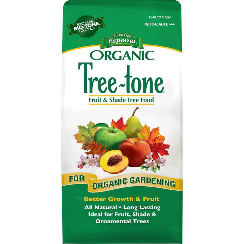 Description: Tree-tone All-Natural Plant Food 6-3-2 formula is enhanced with Bio-tone beneficial microbes, which have been proven to help plants establish faster, develop deeper roots, and produce superior blooms. For planting and feeding shade, fruit and ornamental trees. A complex blend of natural organics. Helps in the development of the entire tree.