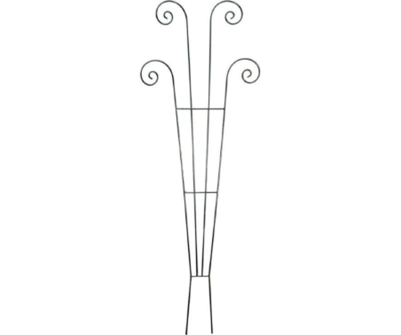 Description: Durable trellis made out of black powder-coated steel. Compact size for use in potted plants. Rods within each arched trellis evoke twigs, and bird shapes perch on these rods. Legs insert into soil easily for quick placement.