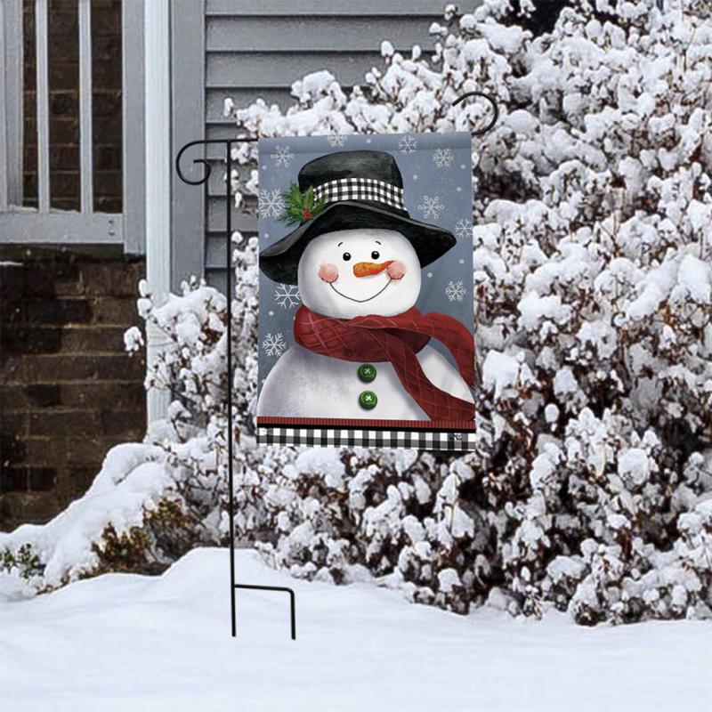 | The Smiling Snowman Garden Flag measures 18" x 12.5". It adds a colorful, welcoming touch of the season to your home and garden with a premium decorative flag from Briarwood Lane. Their original artwork, printed on polyester material designed for outdoor display, provides unique designs that are as durable as they are beautiful! Any text is correctly readable on one side. Flag stands are sold separately. |