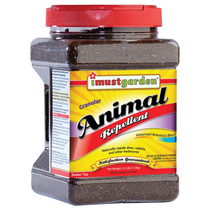 | I Must Garden Granular Animal Repellent is an environmentally friendly granular repellent that will safely and effectively repel deer, rabbits, groundhogs and other herbivores (plant-eating animals) from treated areas. Made with ingredients herbivores naturally avoid and fortified with an advanced botanical blend of plant oils, it is a strong and effective repellent. Perfect for early spring applications of newly emerging plants and for applying during wet conditions when spraying is not an option. Use in the fall to encourage groundhogs to hibernate elsewhere. It does not have a foul or offensive odor and it is not noticeable once applied. |