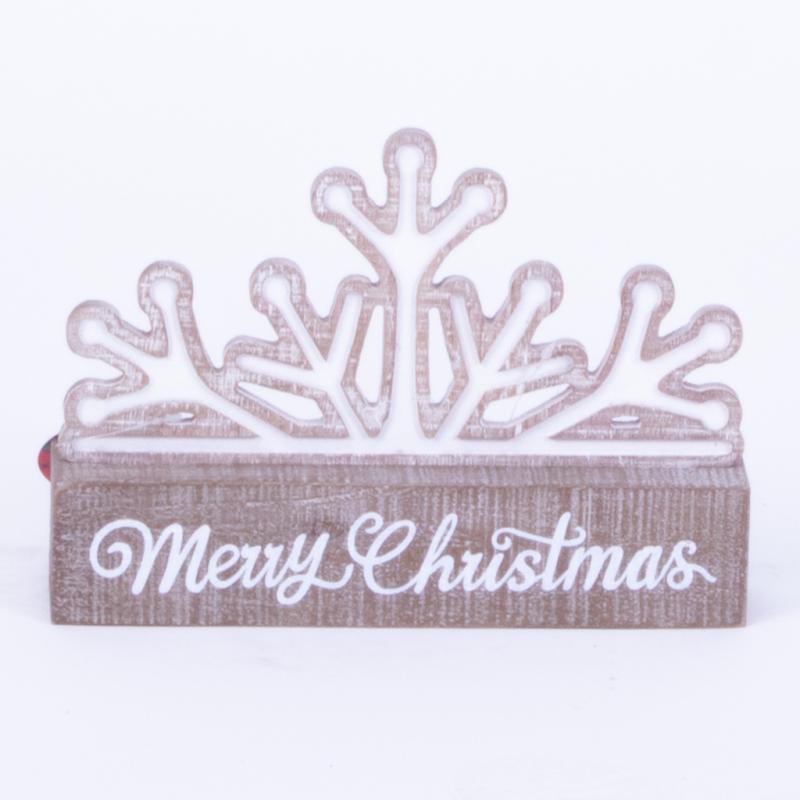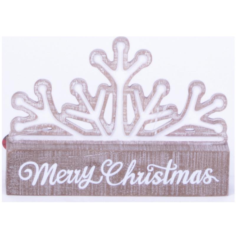 Wooden Merry Christmas Snowflake in White Wash Tablepiece