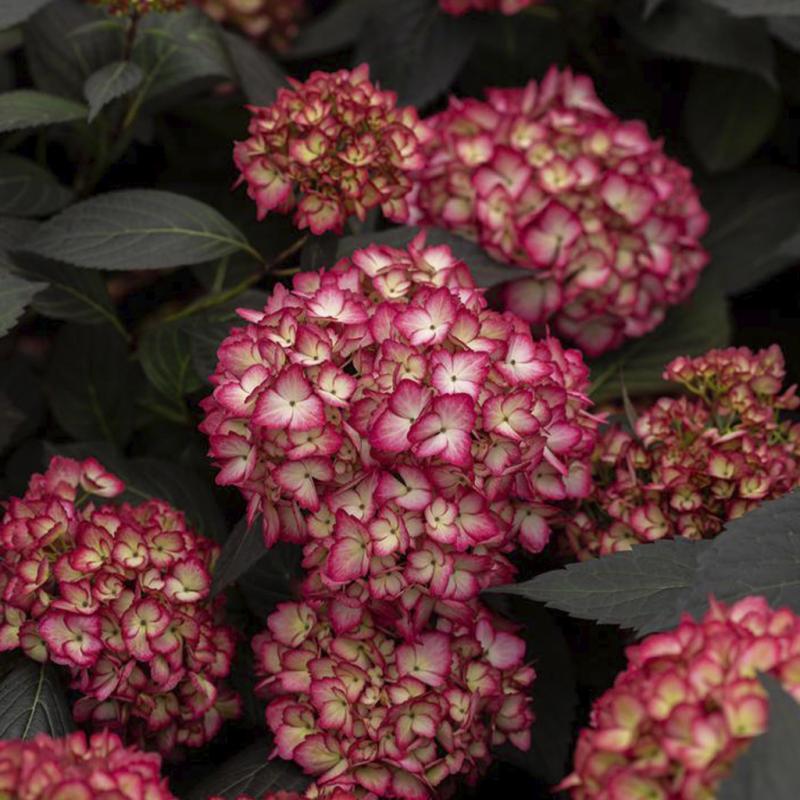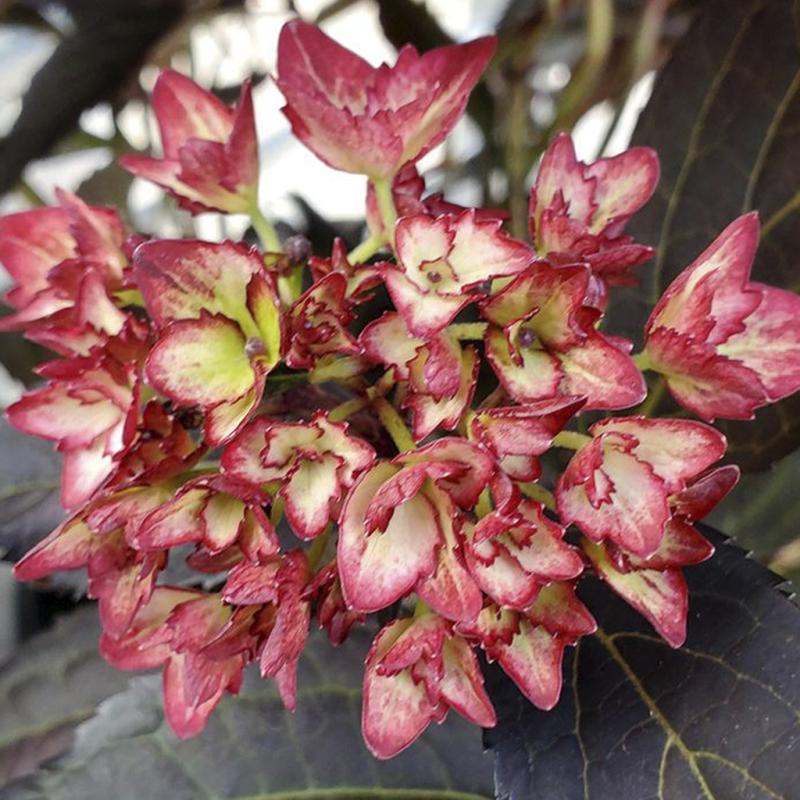 | Eclipse® is the first true dark-leaf Hydrangea macrophylla on the market. It's intense, dark purple foliage holds its color, even in warm climates. The striking foliage, paired with gorgeous amethyst or cranberry-colored blooms, will significantly impact retail, in the garden, and a decorative container. Eclipse® is a grower-friendly plant that offers excellent mildew and Cercospora resistance, holds up well in a garden center, and stands out in the landscape. |