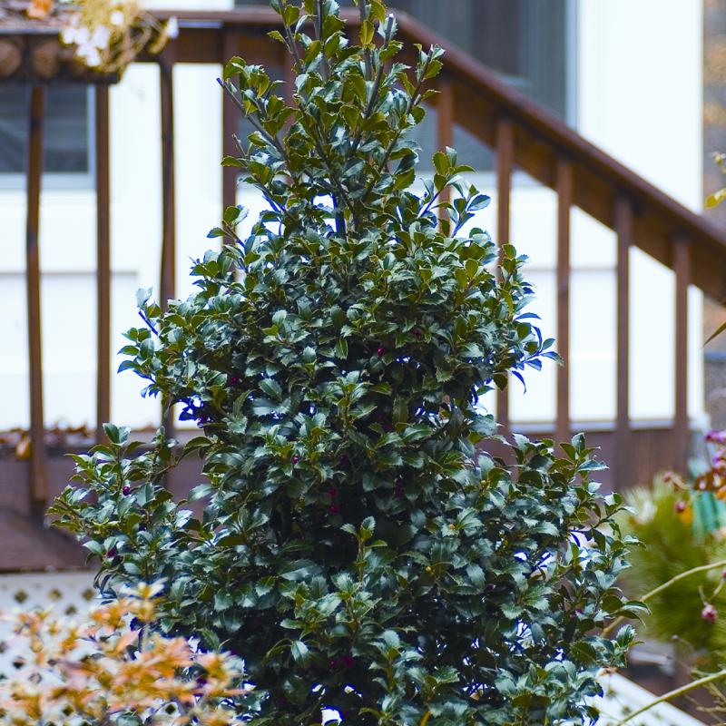 | Castle Spire® is an improvement over other blue holly because of its superior branching and shinier foliage. Bright red berries and red fall color provide another season of interest. A great foundation plant, specimen or hedge plant can be used as a replacement for upright yew. It is best to plant broadleaf evergreens in colder climates so that they are not exposed to winter sun or wind. Adaptable to wet soils. Hybrized by Holger Hachmann, of Germany. Use Castle Wall® as the pollinator. Introduced by Proven Winners® ColorChoice®. (CPBR 2314) |