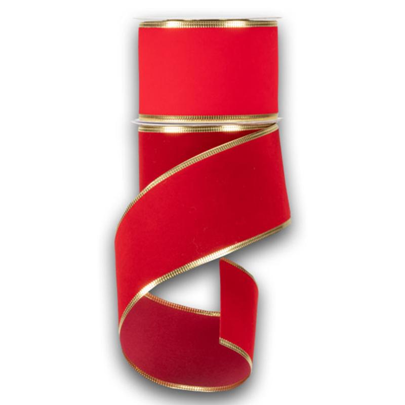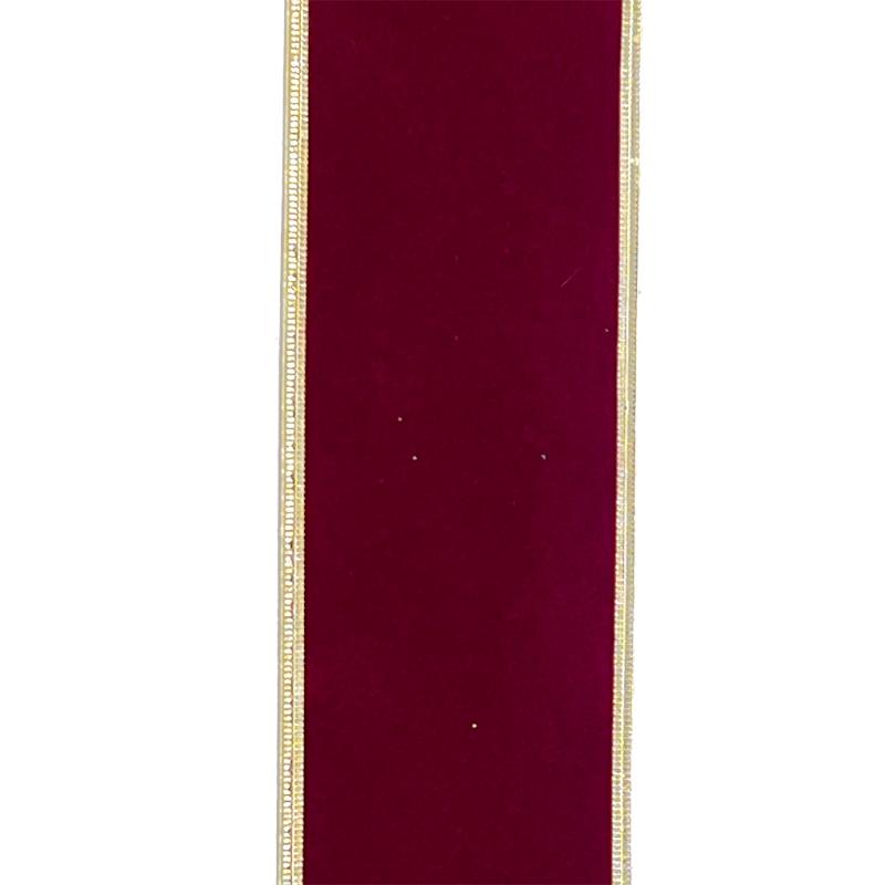 Red / Burgundy Theme Ribbon Burgundy Plush with Gold Edge Wired #40