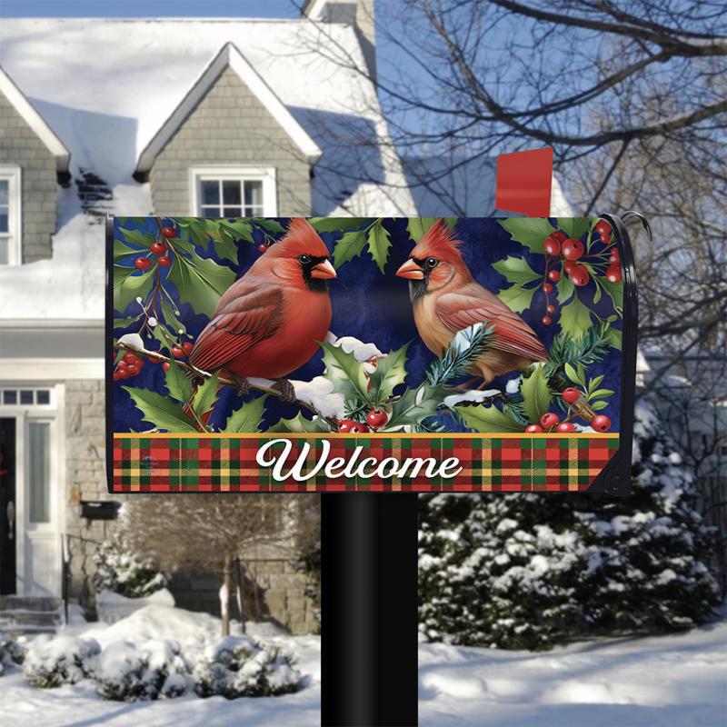 | The Cardinal and Holly Welcome Mailbox Cover is made to fit standard-size steel mailboxes measuring 6.5"W x 19"L. Our mailbox covers are easily attached to steel mailboxes using magnetic strips on each side. Their original artwork, printed on material designed for outdoor display, provides unique designs that are as durable as they are beautiful! With designs for every holiday, theme, and season, Briarwood Lane will surely offer the perfect decorative accent! Each mailbox cover has optional punch-out holes and includes plastic straps for additional security against theft/extreme weather. It also consists of three sets of adhesive numbers. |