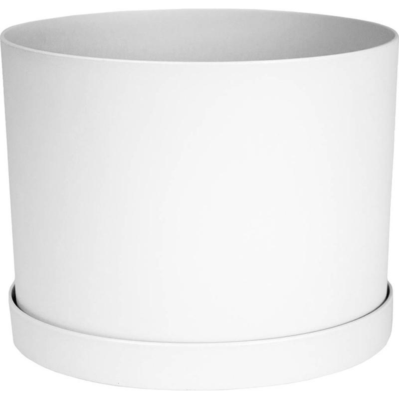 A classic planter design with texture over the entire planter. This planter is a favorite of decorators as this planter looks great in both casual and formal setting. Attached saucer to catch water and save surfaces. For indoor or outdoor use.