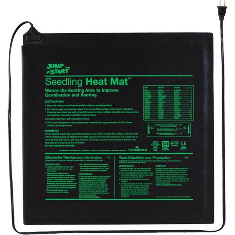 | Jump start your seeds with this seedling heat mat. Re-engineered for better performance and greater durability. The stronger heating wire, and thicker multi-layer construction offer more uniform heating and the durability to withstand rugged greenhouse environments. Increases success of seedlings and cuttings. Warms root area 10-20 degrees Fahrenheit over ambient temperature to improve seed germination and increase success of seedlings and cuttings. Waterproof construction. 6 foot power cord. Light, watering, and planting information on mat. |