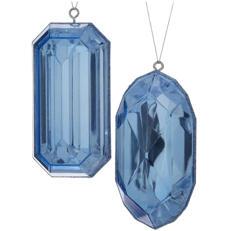 | These light blue ornaments are sold individually and offered in two dazzling shapes — Rectangle or Oval — making them a stunning accent for any festive arrangement. Add sparkle and elegance to your holiday décor with these acrylic, precious gem-cut ornaments. They are shatterproof and perfect for Christmas trees, wreaths, and decorative displays, creating an eye-catching “WOW” factor with their brilliant, gem-like shine. |