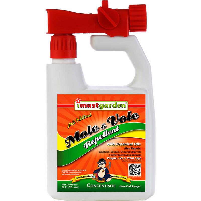 | Put an end to the destruction caused by moles, voles and gophers with I Must Garden's Mole & Vole Repellent. Now you can safely and effectively put an end to the damage to your lawn, flower beds and plants with our all natural repellent. The ingredients in our formulation won't harm the animals, but creates an undesirable environment encouraging them to go elsewhere. It safely and effectively saturates their food sources and surrounding areas, making it taste and smell unpleasant, consequently forcing them to relocate. Safe for you and your family. Safe for the environment. Long lasting protection up to 3 months! |