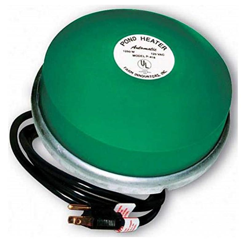 | Best selling pond de-icer on the market. Constructed of patented cast aluminum for ultimate efficiency and safety. Designed to keep a small hole open in ice to release harmful gasses. Thermostatically controlled to operate only when necessary. For use in ponds of 50 to 600 gallons. 1,250 Watts of power with 10' supply cord. Safe in all ponds. Attractive 4 color retail packaging. Guaranteed for three years. |