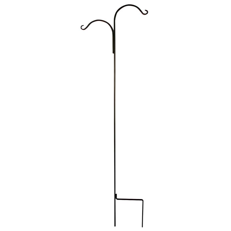 Double hook crane used to hold feeders and plants. Hand-crafted wrought iron construction. Black.