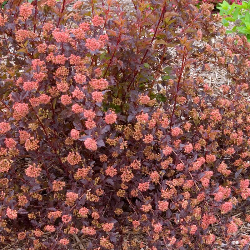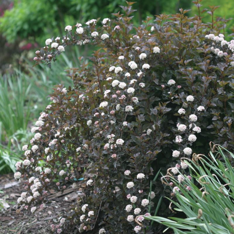 Description: Improved variety of ninebark with neat, compact branching and delicate, deeply cut, dark crimson-red leaves. Summer Wine® combines Physocarpus 'Nanus' fine texture with the dark foliage of Diabolo®. Requires little pruning. Pinkish-white flowers in mid-summer show nicely against the dark foliage. (CPBR 2641)
