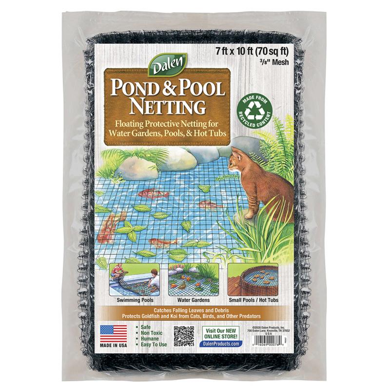 | Keeps falling leaves out of ponds and pools, and protects goldfish and Koi from cats and other predators. Protective polypropylene floating net with small 3/8" mesh size stops even the smallest debris. Contains UV inhibitors for longer life. Boosts category sales when merchandised with water gardening products. Made in the U.S.A. | |