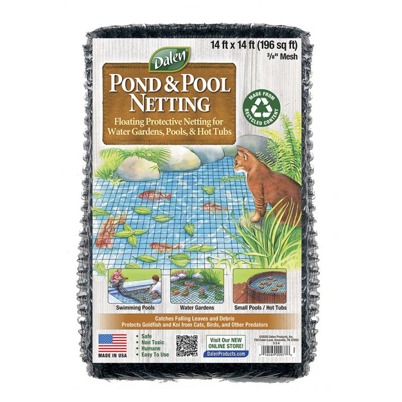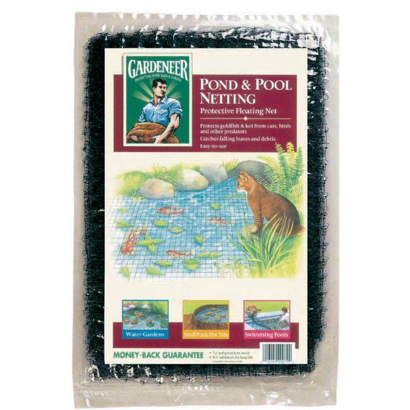| Pond and pool protective floating net with small 3/8in mesh size stops even the smallest debris. Keeps falling leaves out of ponds and pools. Protects goldfish and koi from cats and other predators. |
