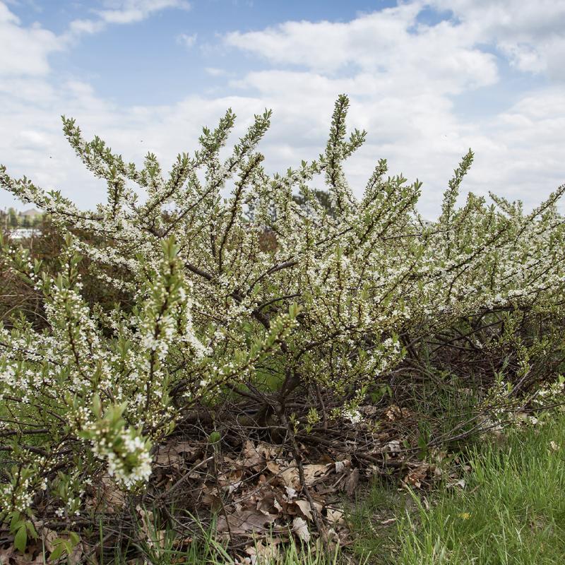| Purpleleaf Sand Cherry is a beautiful shrub with rich reddish-purple foliage. Its delicate and fragrant light pink flowers are born after the leaves have developed and its foliage emerges fully. Its small blackish-purple fruits appear in July and are enjoyed by birds during the growing season. This fast-growing, showy, medium-sized shrub will make an excellent accent in your landscape with its red tones and highlights of white flowers. The unique leaf color of the Purpleleaf Sand Cherry makes this a perfect addition to entryways or as a border, screen, or hedge. Once the plant matures, its leaves may reach 2 inches long. |