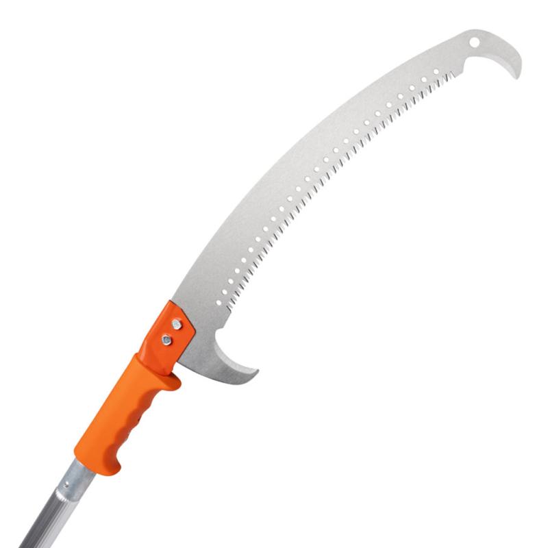 | Curved pruning saw with a 12" "turbo" blade that cuts on both push and pull strokes and is made of precision sharpened tempered steel. Handle has a knuckle guard for greater safety. 10-year warranty. |